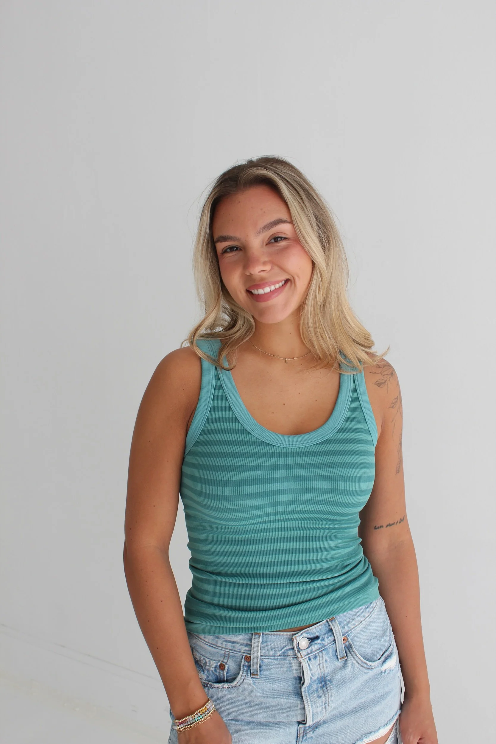 Store › Dusty Teal Tank Image 1 of 3 Image 2 of 3 Image 3 of 3 Dusty Teal Tank $23.00 One Size OnlyReversible can be worn as a scoop neck or crew neck Purchase Added! One Size OnlyReversible can be worn as a scoop neck or crew neck