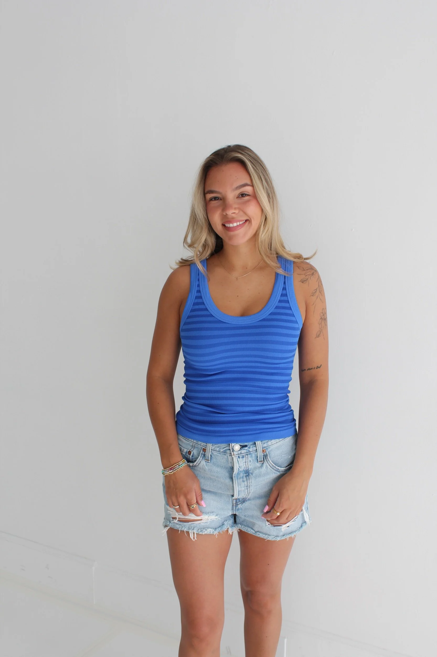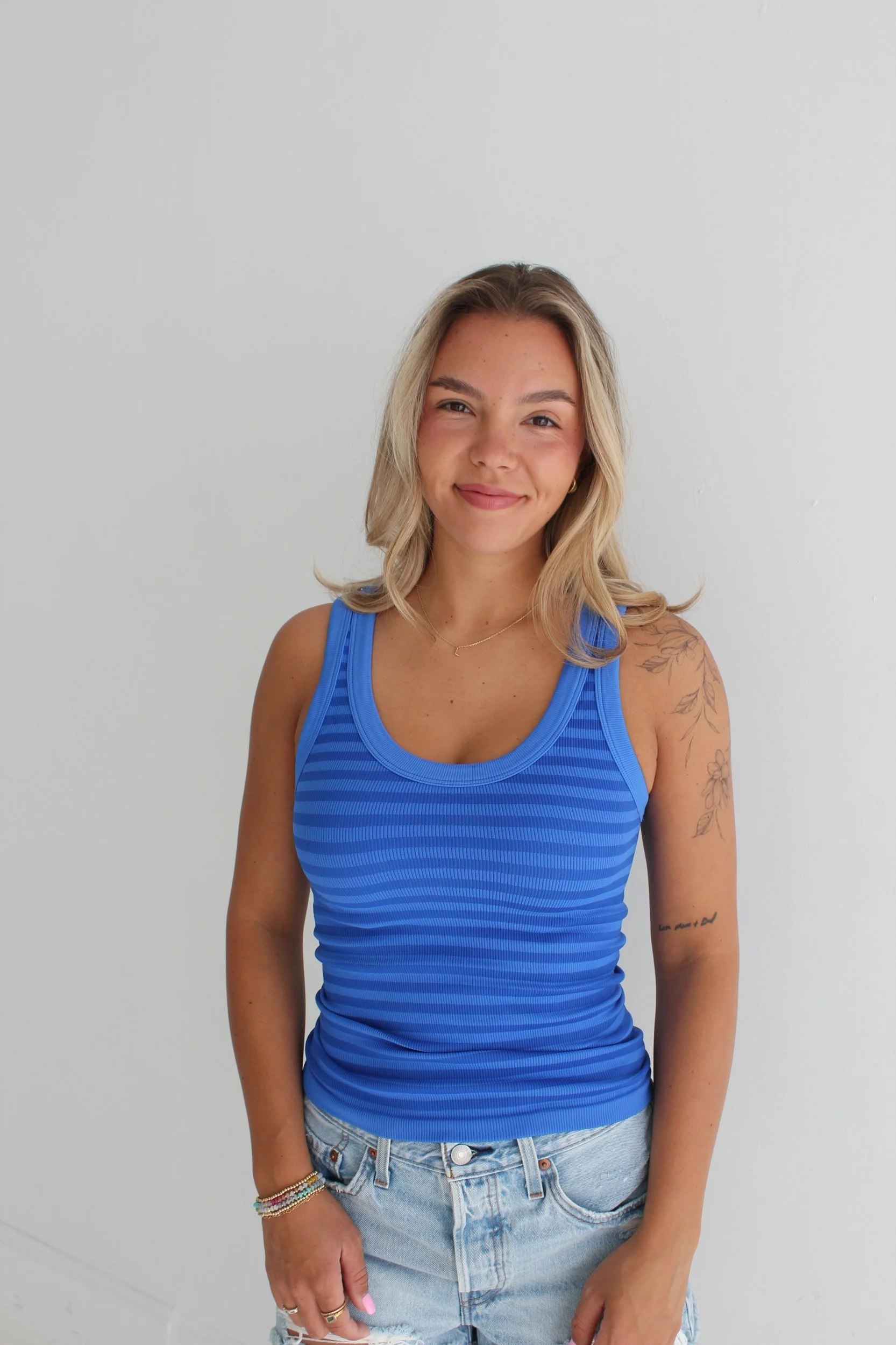 Store › Vibrant Blue Tank Image 1 of 3 Image 2 of 3 Image 3 of 3 Vibrant Blue Tank $23.00 One Size Fits AllReversible can be worn as a scoop neck or crew neck Purchase Added! One Size Fits AllReversible can be worn as a scoop neck or crew neck